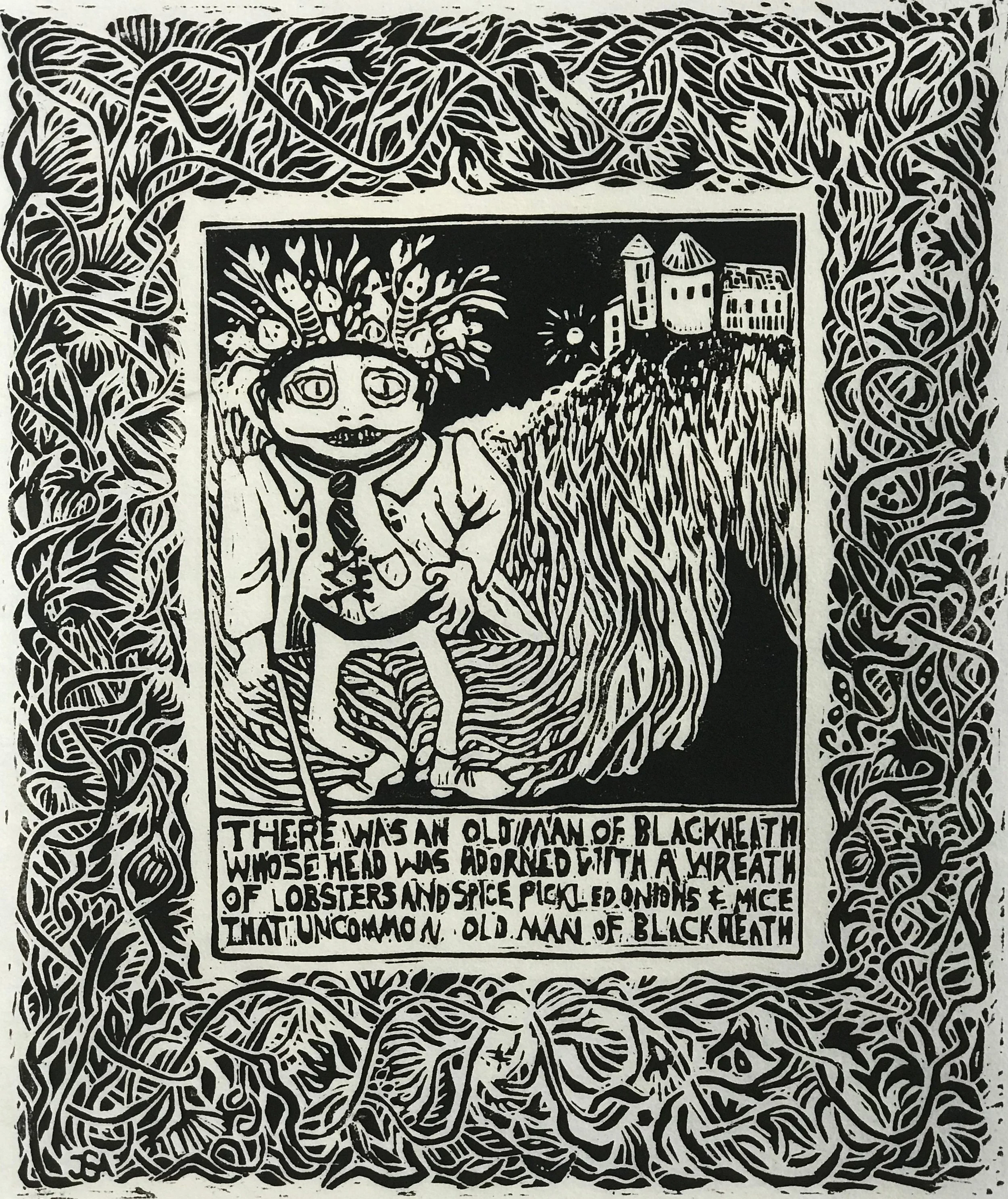 I work primarily in linoleum block printing, usually focusing on scenes of Coney Island, in Brooklyn, New York. Recently, I’ve been focusing on carousel animals from around the world because I like the strange and often contorted expressions on the faces, like “get me outta here!” I usually work in a series, exploring a theme through a multitude of various prints on a specific theme.